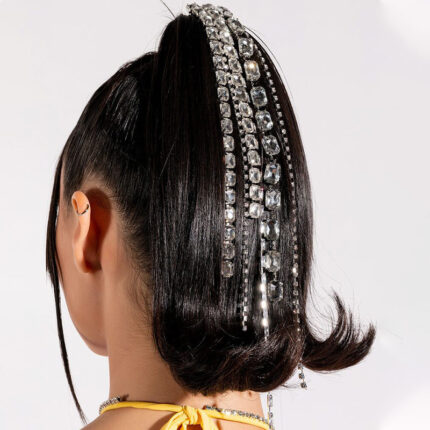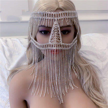 Chaîne de tête en strass à longues franges exagérée