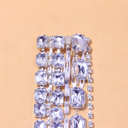 Chaîne de luxe avec tête à pompon longue en cristal carré brillant pour femmes