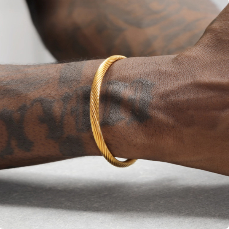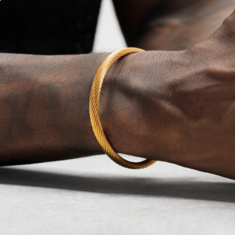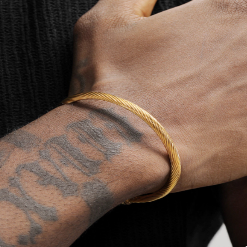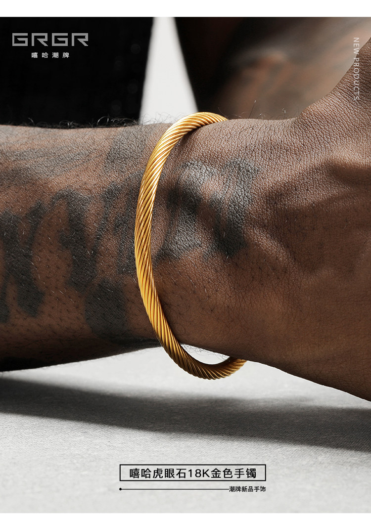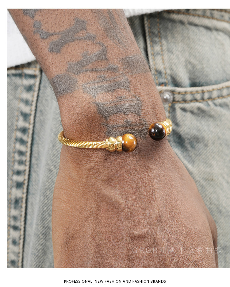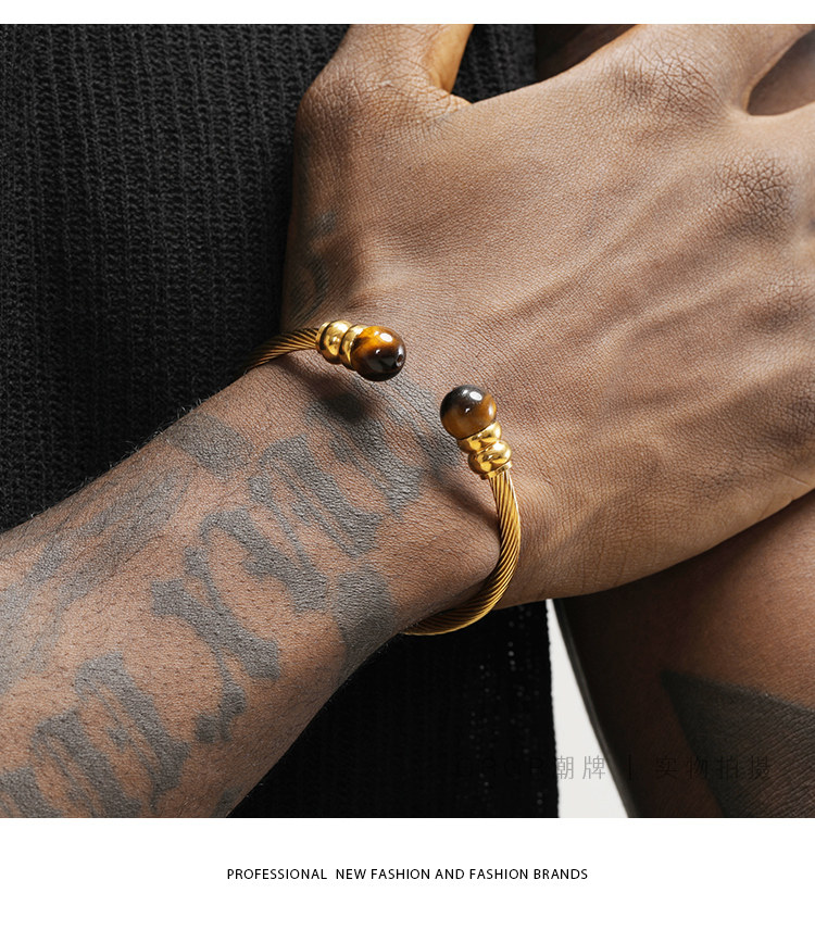 Matériau : acier galvanisé or 18 carats + pierre d’œil-de-tigre