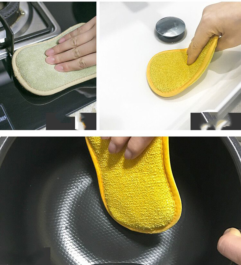 L’artefact de la brosse à vaisselle double face ne blesse pas le pot sans les rayures, tampon à récurer, tampon à récurer, éponge, torchon antiadhésif pour la décontamination et l’absorption d’eau !