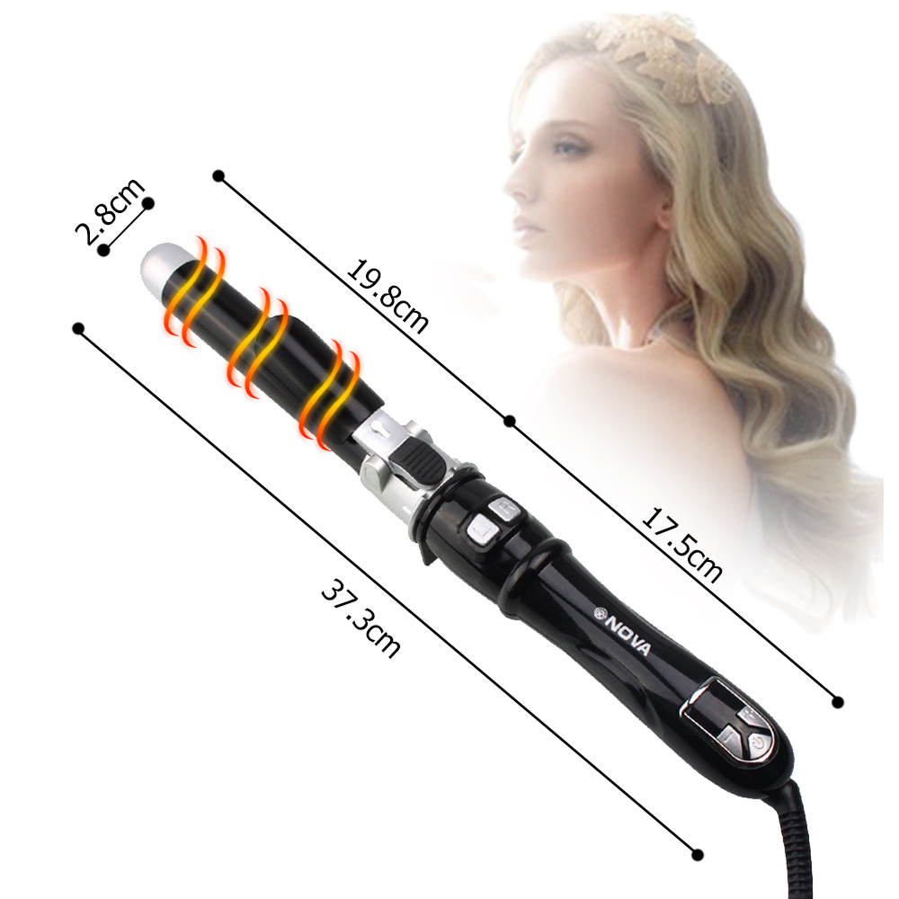1 : Fer à friser automatique régulant la température, boutons de frisage gauche et droit, avec pince à sertir qui ne cassera pas les cheveux, poignée en plastique PC peinture en aérosol, câble d’alimentation anti-roulis à 360 degrés.